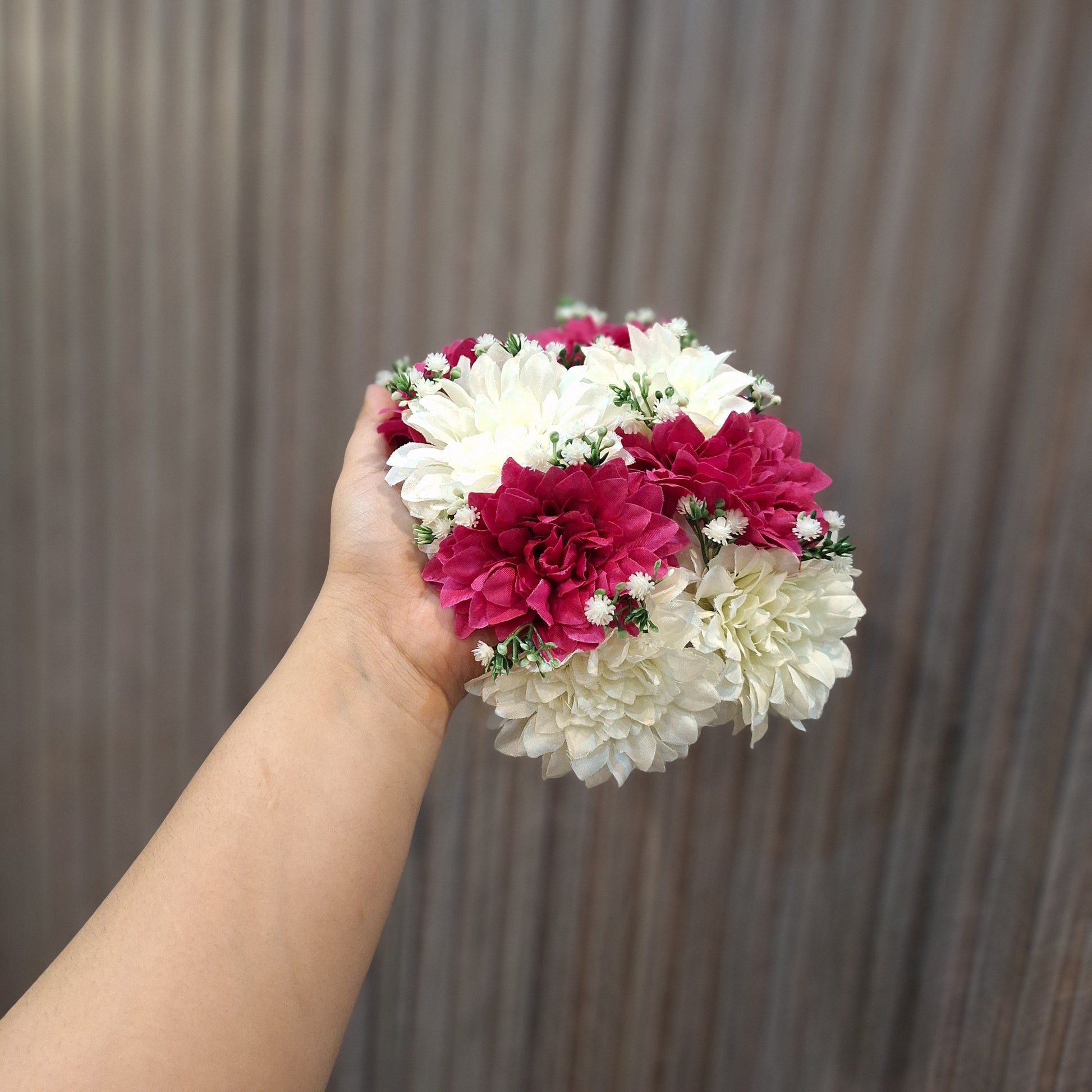 Elegant Magenta & White Chrysanthemum Gajra/Wristlet